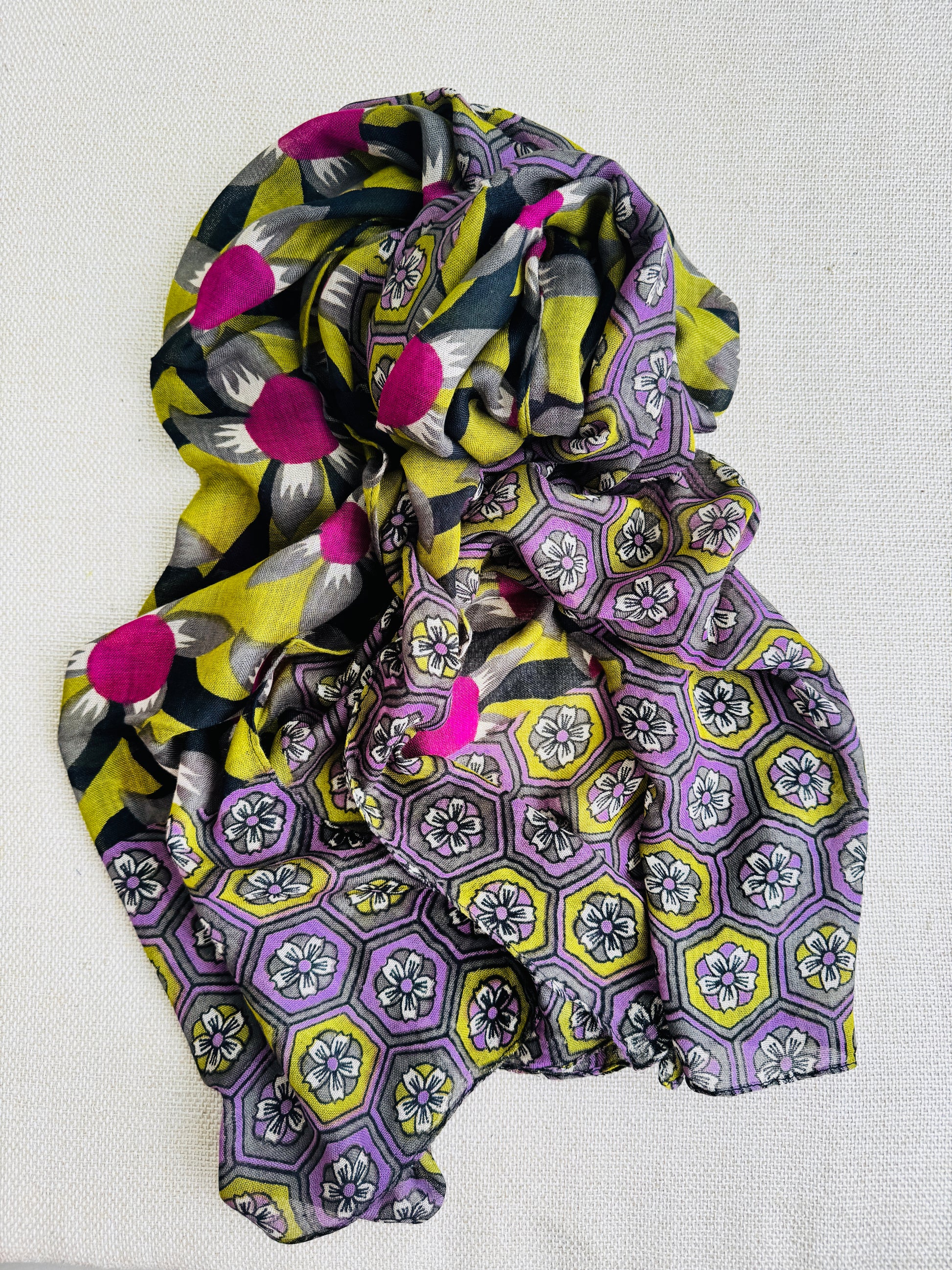 Bright poly cotton scarf - Lightweight long stole - Purple multicolor