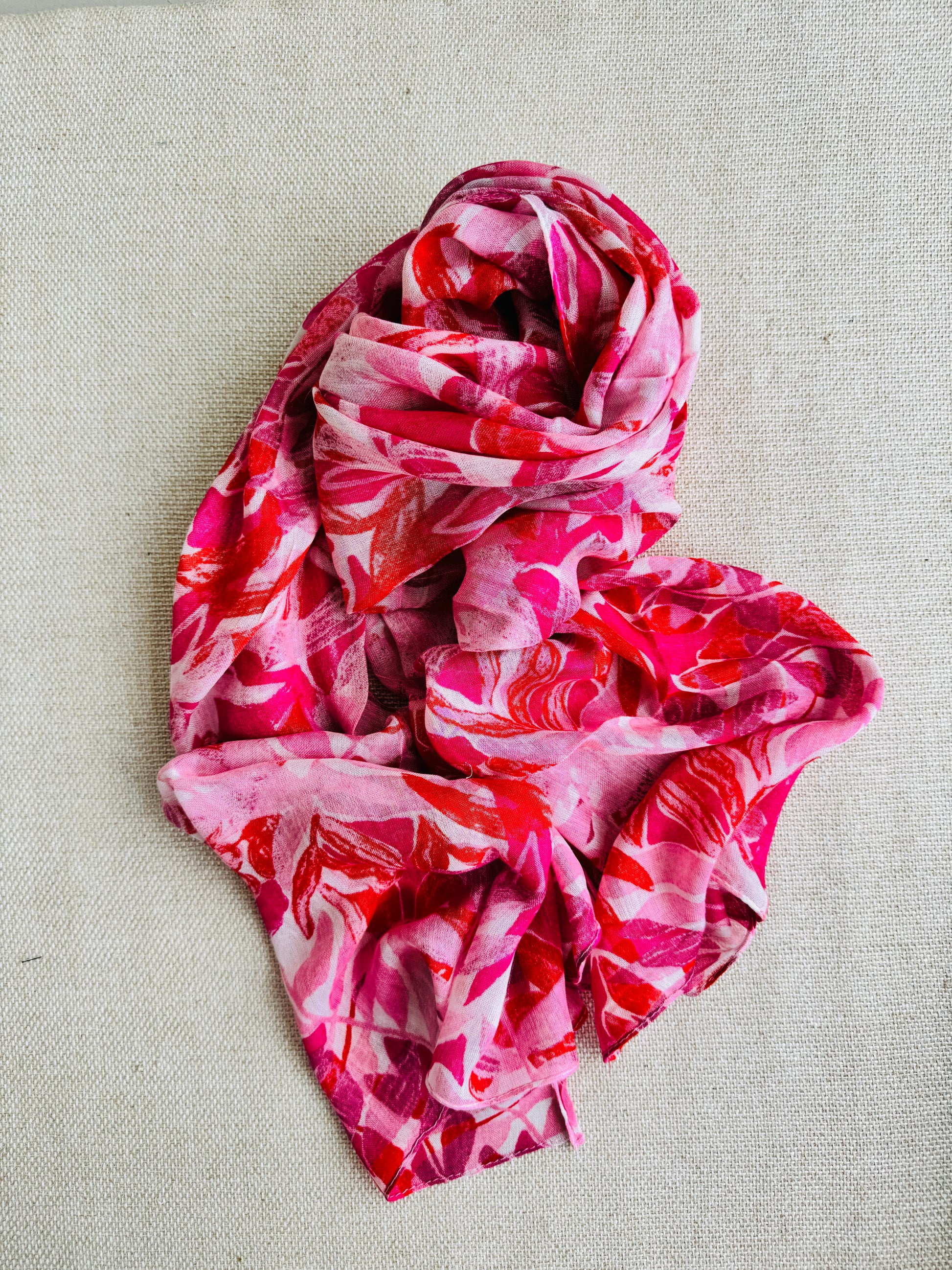 Bright poly cotton scarf - Lightweight long stole - red and white printed