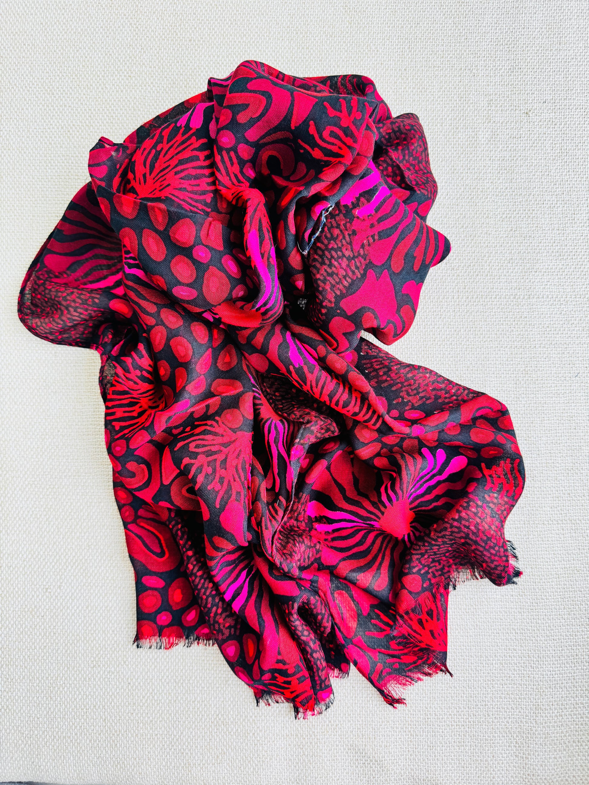 Bright poly cotton scarf - Lightweight long stole - Bright pink scarf
