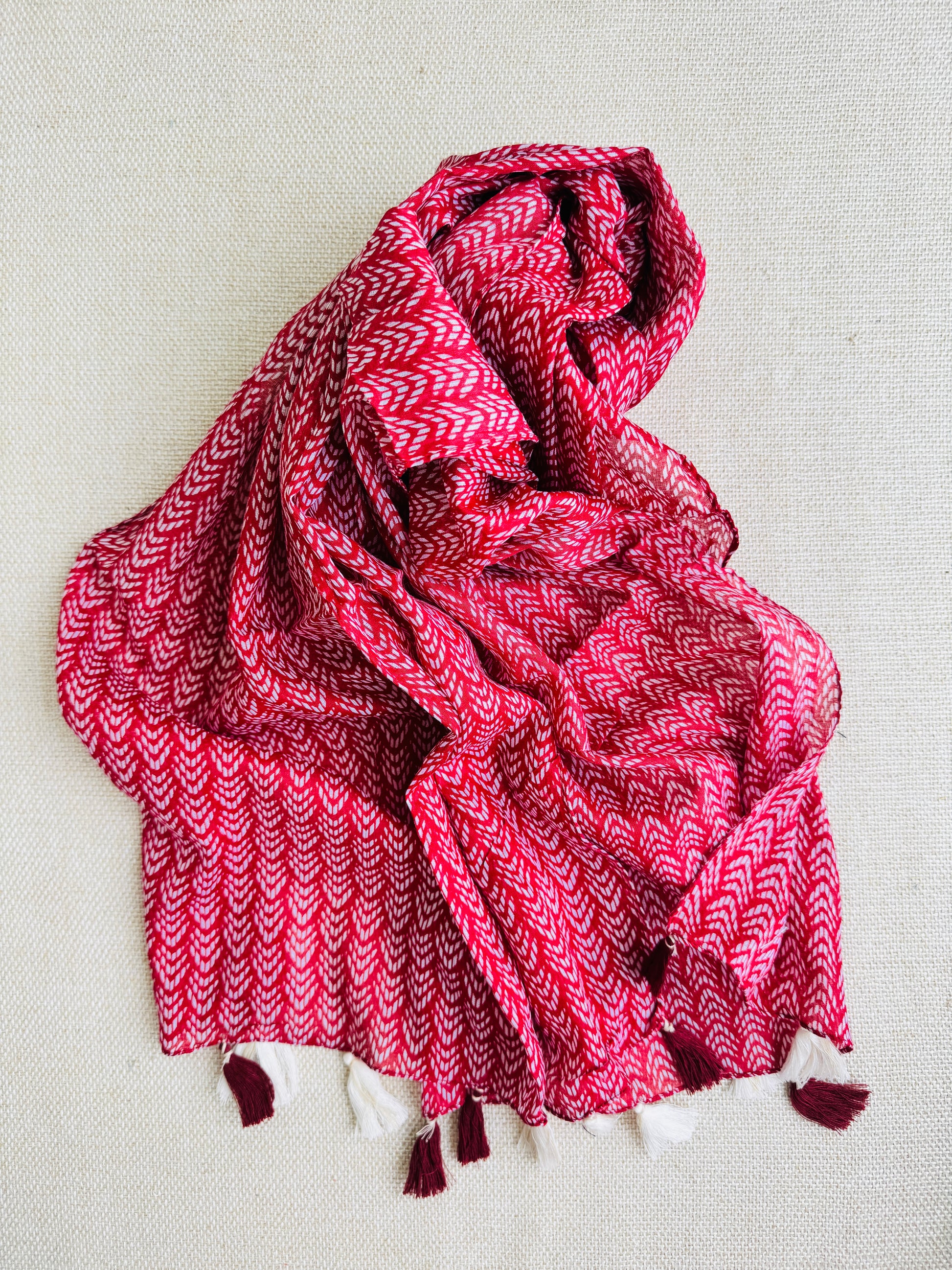 Bright poly cotton scarf - Lightweight long stole - Maroon tasseled stole