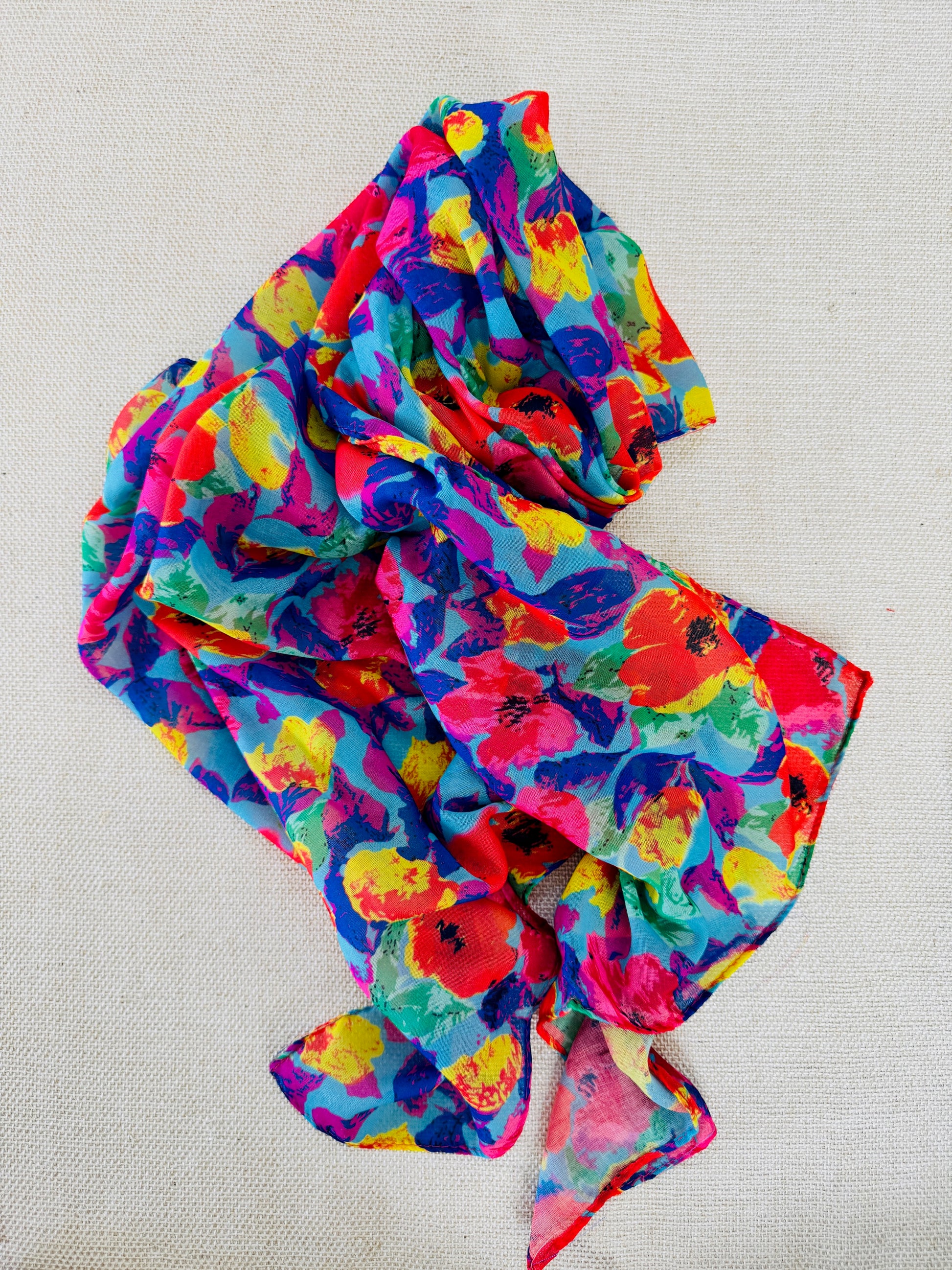 Lightweight Printed Poly-Cotton Scarf for Women - Colorful scarf