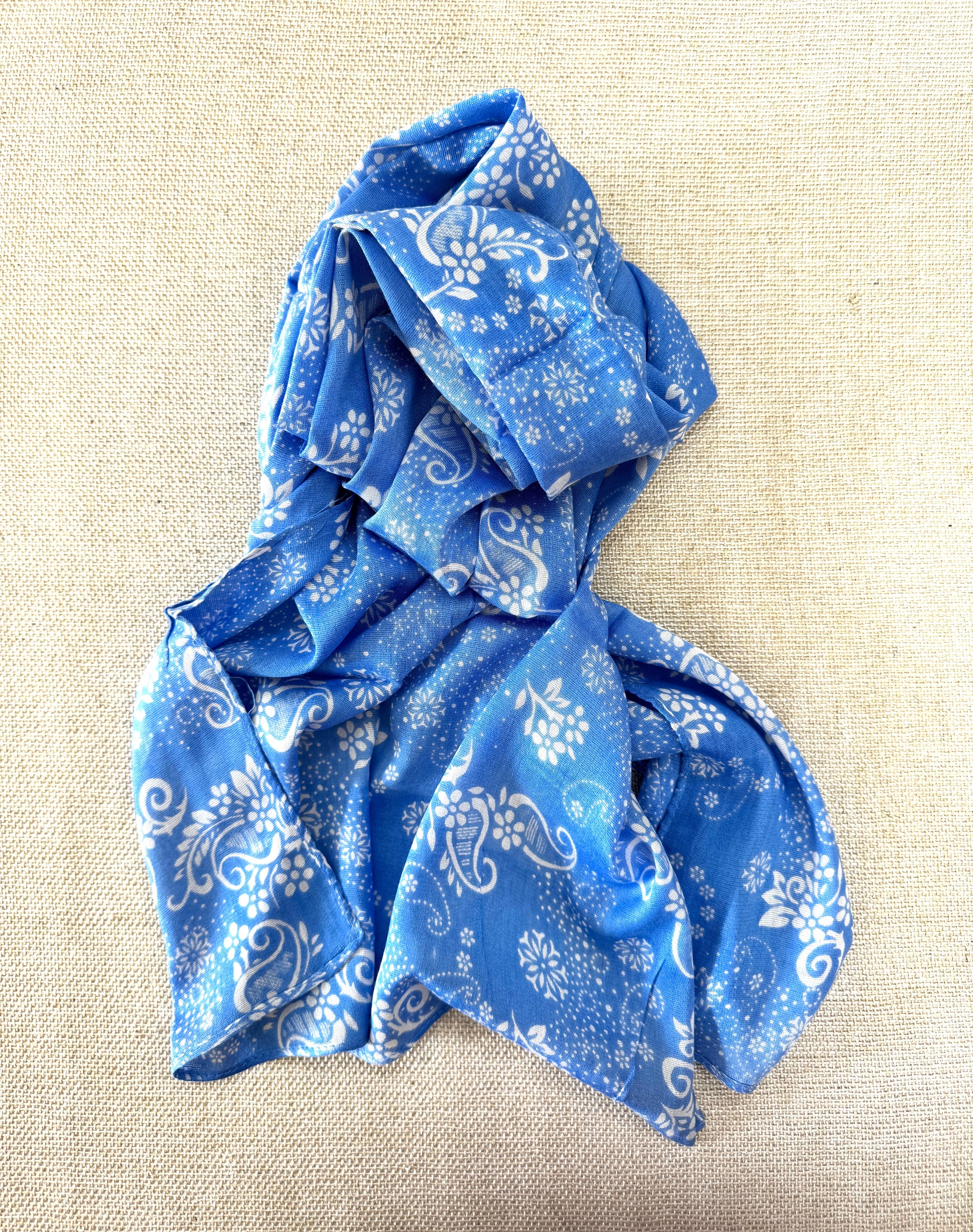 Lightweight Printed Poly-Cotton Scarf for Women Light color scarf - Powder blue scarf